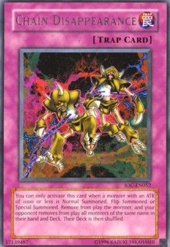 You can only activate this card when a monster with an ATK of 1000 or less is Normal Summoned, Flip Summoned or Special Summoned. Remove the monster from play and your opponent removes all monsters of the same name in his/her hand and Deck from play. His/her Deck is then shuffled.