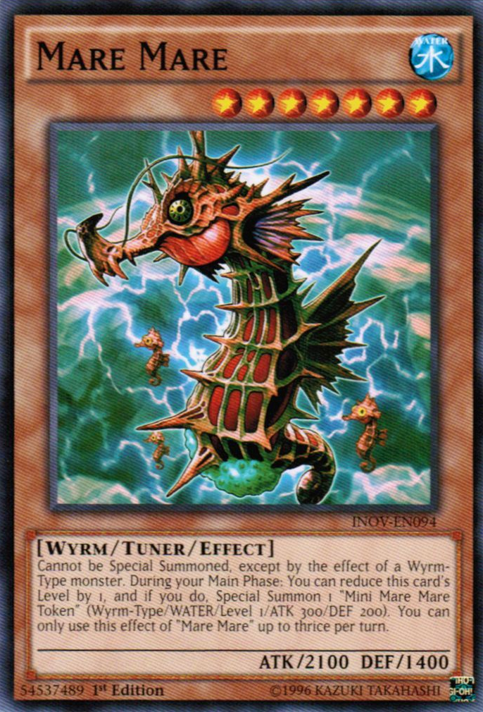 Cannot be Special Summoned, except by the effect of a Wyrm-Type monster. During your Main Phase: You can reduce this card's Level by 1, and if you do, Special Summon 1 "Mini Mare Mare Token" (Wyrm-Type/WATER/Level 1/ATK 300/DEF 200). You can only use this effect of "Mare Mare" up to thrice per turn.