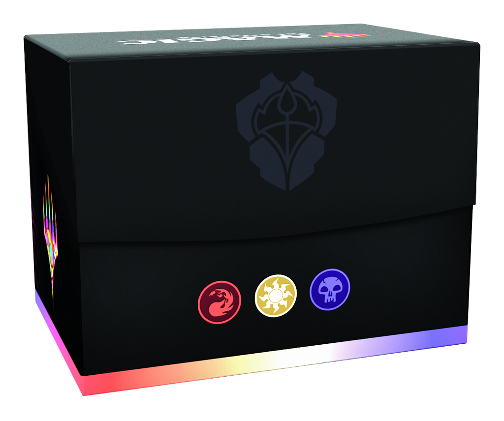 The Dominaria United Commander Decks includes 1 ready-to-play deck of 100 Magic cards (2 traditional foil legendary cards, 98 nonfoil cards), a 2-card Collector Booster Sample Pack, 1 foil-etched Display Commander (a thick cardstock copy of the commander card with foil etched into the card's border and art), 10 double-sided tokens, 1 deck box (can hold 100 sleeved cards), 1 Life Wheel, 1 strategy insert, and 1 reference card.
