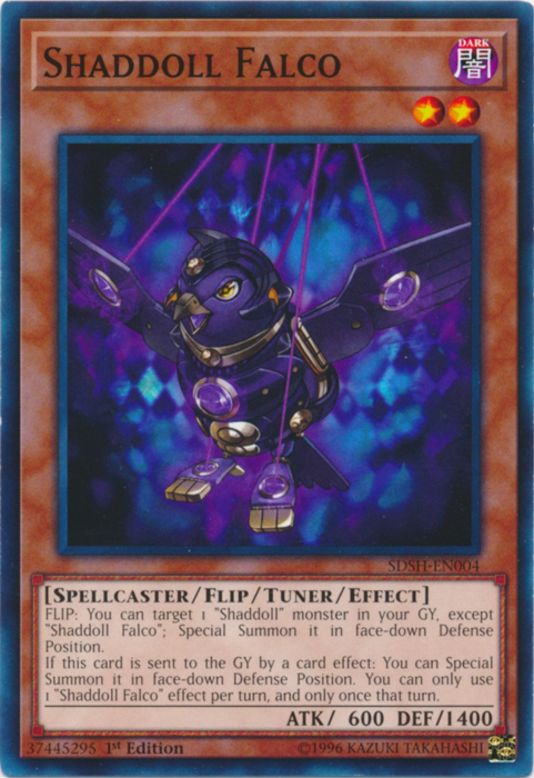 FLIP: You can target 1 "Shaddoll" monster in your GY, except "Shaddoll Falco"; Special Summon it in face-down Defense Position. If this card is sent to the GY by a card effect: You can Special Summon it in face-down Defense Position. You can only use 1 "Shaddoll Falco" effect per turn, and only once that turn.